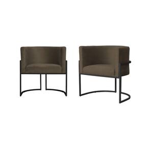 Kit 2 Poltronas Decorativa Luana Linho Marrom Base Preta Ms Decor