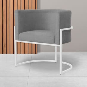 Kit 2 Poltronas Decorativa Luana Suede Cinza Base Branca Ms Decor