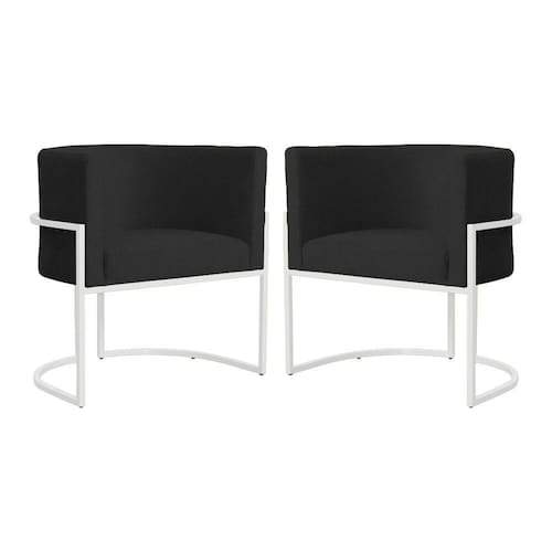 Kit 2 Poltronas Decorativa Luana Suede Preto Base Branca Mz Decor