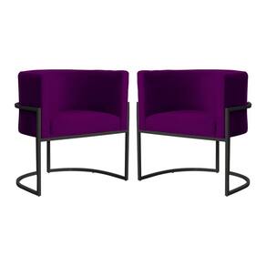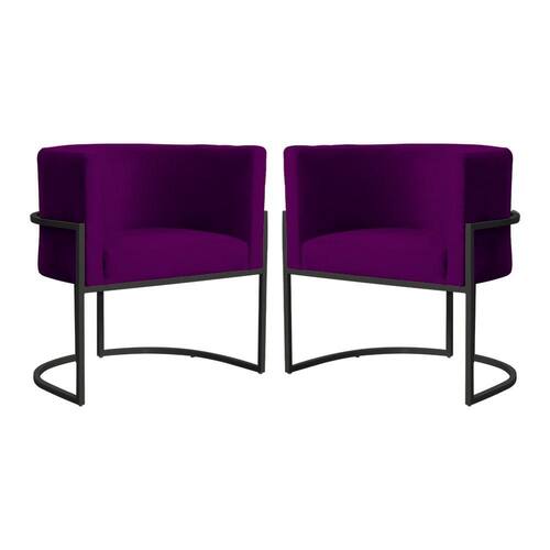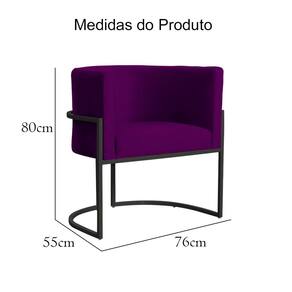 Kit 2 Poltronas Decorativa Luana Veludo Roxo Base Preta Mz Decor