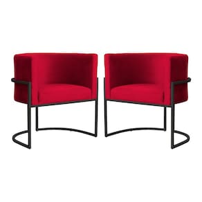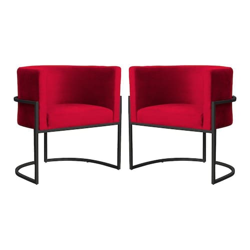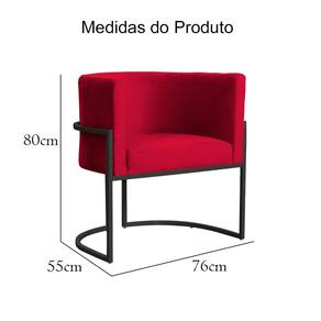 Kit 2 Poltronas Decorativa Luana Veludo Vermelho Base Preta Mz Decor