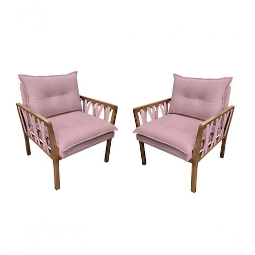 Kit 2 Poltronas Decorativa Luxo Safira Dora Bela Cor 0125 Rosa