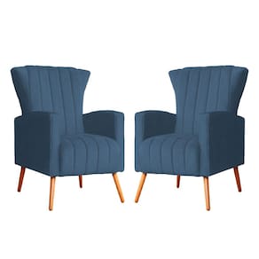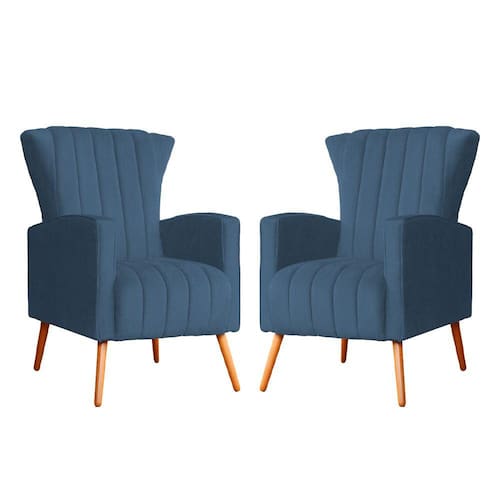 Kit 2 Poltronas Decorativa Melinda Suede Azul Royal Pés Madeira Mz Decor