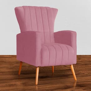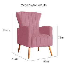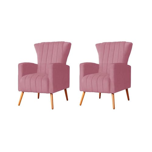 Kit 2 Poltronas Decorativa Melinda Suede Rosa Pés Madeira Ms Decor