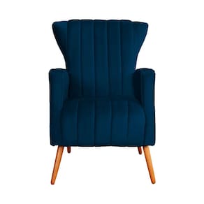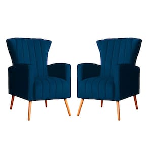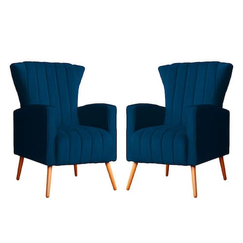 Kit 2 Poltronas Decorativa Melinda Veludo Azul Marinho Pés Madeira Mz Decor