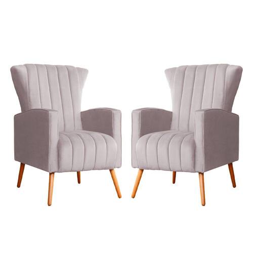 Kit 2 Poltronas Decorativa Melinda Veludo Rosê Pés Madeira Mz Decor