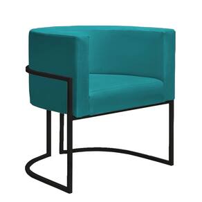 Kit 2 Poltronas Decorativa Nayara Base Ferro Preto Suede - Azul