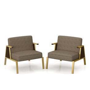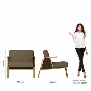 Detalhes Técnicos das Poltronas - Assento e Encosto Tapeçados, Estofados e Fixos - Espuma do Assento e do Encosto: D20 - Tonalidade da Estrutura: Dourado/Imbuia -Tonalidade do Tecido: Suede Capuccino - Material: Estrutura em Metalon | Detalhe braço em MDF - Medida Poltrona: A: 72CM x L: 73CM x P: 85CM - Medida do chão até o assento: 42cm de altura - Poltrona suporta até 120KG - Montagem: Difícil