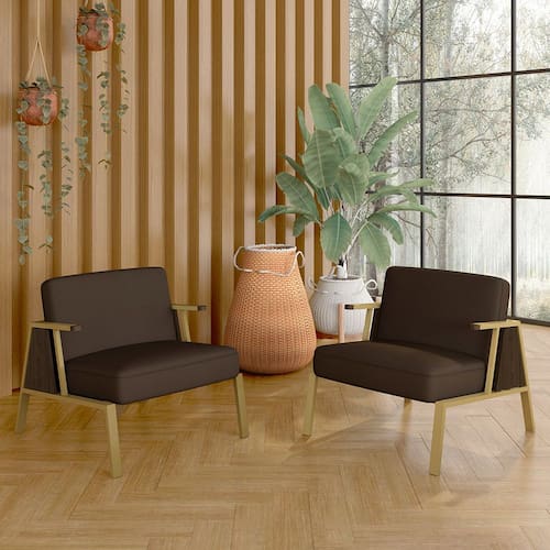 Kit 2 Poltronas Decorativa Newark Dourado/imbuia/suede Marrom - M.a
