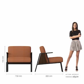 - Tonalidade: Preto Fosco (estrutura)/Imbuia (detalhe braço)/Suede Terracota (estofado)