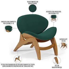 Altura: 72 cm | Color: Verde | ColorFamily: Verde | ColorSimple: Verde | ColorSupplier: Verde | Cor: Verde | Cor dos pés: Mel | Densidade da espuma do assento: D-23 | Desenho do tecido: Liso | Estilo: Moderno | Fabricante: Lyam Decor | Formato do sofá: Linear | Largura: 76 cm | Linha: Sala de Estar living | Material: Estrutura em madeira de reflorestamento de Taeda com acabamento envernizado na tonalidade Mel. | Material de enchimento do encosto: Espuma D-18 | Material do estofamento: Bouclê | MaterialFamily: Madeira, Tecido | Mecanismo de abertura do produto: -1 | Model: Kadosh | Orientação do Sofá: -1 | OriginCountry: | OriginState: PR | Peso: 26 kg | Peso máximo suportado: 150 Kg | ProductContents: 02 Poltrona | ProductHeight: 72 cm | ProductInstructions: Produto para uso em ambiente interno, nao devendo ficar exposto ao sol, calor e umidade excessivos. | ProductLength: 79 cm | ProductWarranty: 90 dias após o do produto | ProductWeight: 26 kg | ProductWidth: 76 cm | Profundidade: 79 cm | Quantidade de Caixas de embalagem: 1 | Requer montagem: Não | SizeDescription: Altura: 72 cm x Largura: 76 cm x Profundidade: 79 cm | SupplierSimpleName: Kit 2 Poltronas Decorativa Orgânica Sala Living Kadosh L02 Bouclê Verde - Lyam Decor | Tipo de produto: Poltrona | Unidades por kit: 2