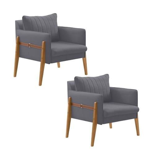 Kit 2 Poltronas Decorativa para Sala de Estar Orion Cinza Cinza/Cinza