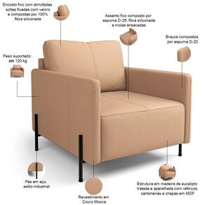 Seus pés metálicos em estilo industrial conferem não somente beleza, mas também um charme contemporâneo que se destaca em sala de estar, living, escritório ou até mesmo no seu cantinho de leitura. Confortável e versátil, a poltrona industrial Domani harmoniza com diversos estilos de decoração, sendo a escolha ideal para quem quer ousar sem abrir mão do conforto. Transforme seu lar em um verdadeiro espaço de estilo e aconchego com a Poltrona Decorativa Domani.