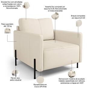 Relaxe com o Kit 2 Poltronas Decorativa Domani L06 Couro Off White Lyam Decor, desenvolvido para levar conforto e estilo à sua sala de estar ou espaço de leitura. Com assento em espuma D-26, fibra siliconada e molas ensacadas, oferece apoio agradável para uso prolongado. O revestimento em couro na tonalidade off white traz toque sofisticado, enquanto os pés em aço de estilo industrial garantem visual contemporâneo ao ambiente. Suas dimensões amplas e encosto com almofadas soltas proporcionam acomodação confortável para diferentes momentos do dia. Ideal para compor salas, livings e escritórios com um conjunto harmonioso de duas poltronas decorativas.