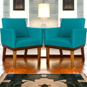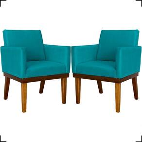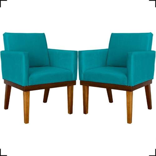 Kit 2 Poltronas Decorativa Para Sala Recepção Consultório Escritório Base Em Madeira Divine Suede