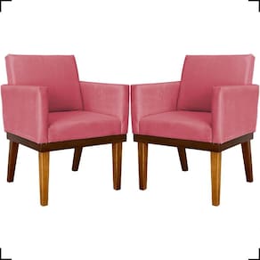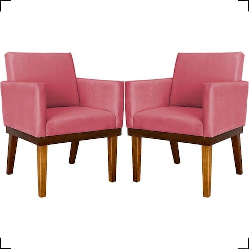 Kit 2 Poltronas Decorativa Para Sala Recepção Consultório Escritório Base Em Madeira Divine Suede