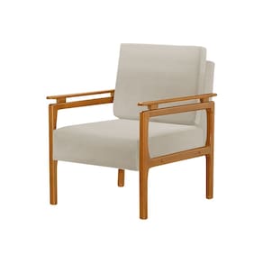 Kit 2 Poltronas Decorativa Pés de Madeira Maciça Yasmin Veludo Bege