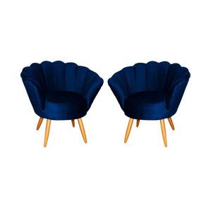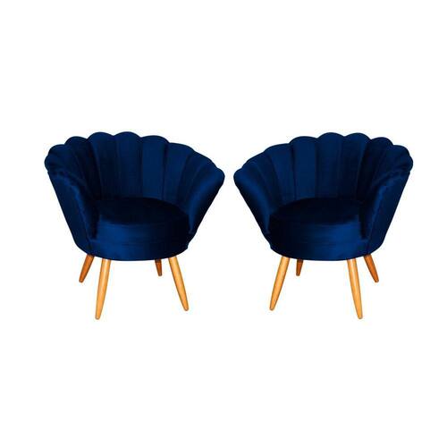 Kit 2 Poltronas Decorativa Pétala Veludo Azul Marinho Pés Madeira Mz Decor