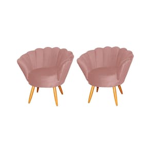 Kit 2 Poltronas Decorativa Pétala Veludo Rosa Pés Madeira Ms Decor