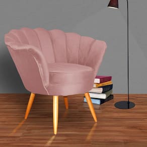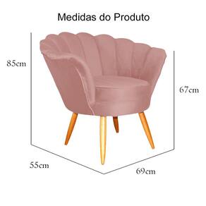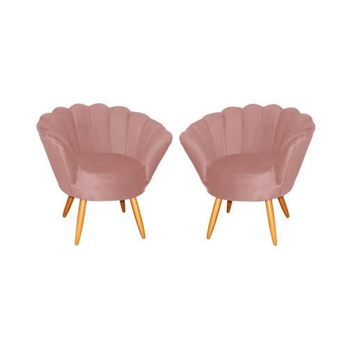 Kit 2 Poltronas Decorativa Pétala Veludo Rosa Pés Madeira Mz Decor