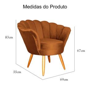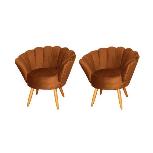 Kit 2 Poltronas Decorativa Pétala Veludo Terracota Pés Madeira Ms Decor - Rosa