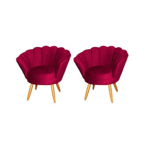 Kit 2 Poltronas Decorativa Pétala Veludo Vermelho Pés Madeira Ms Decor