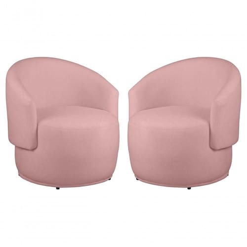 Kit 2 Poltronas Decorativa Redondo Estofada Heitor Sala Escritório E Recepção Suede Rosa Eli Móveis