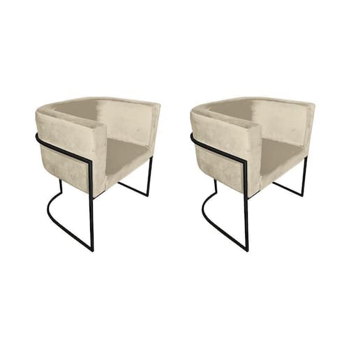 AS IMAGENS SÃO MERAMENTE ILUSTRATIVAS E PODEM SOFRER VARIAÇÕES DE COR E PEQUENOS DETALHES DE ACORDO COM O SEU MONITOR, ILUMINAÇÃO DO AMBIENTE E ATÉ MESMO A SUA PERCEPÇÃO VISUAL.Kit 2 Poltronas Decorativa Sala De Estar Base De Ferro Preta Veludo Bege