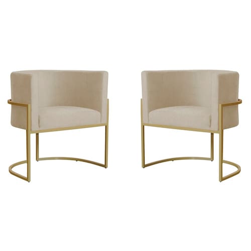 Kit 2 Poltronas Decorativa Sala de Estar Luana Base Gold Suede Bege - Montanaris Decor