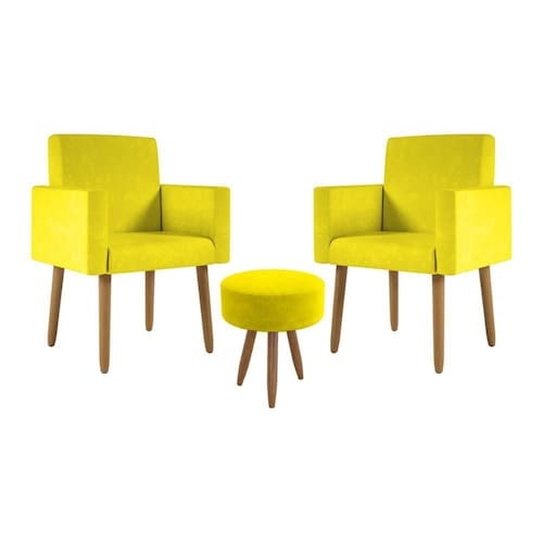 A cor real pode variar ligeiramente devido às configurações da tela e ao tratamento das imagensO Prazo de envio é de 5 dias úteis após a confirmação da compra e enviamos para todo o BrasilPerguntas FrequentesComo devo limpar?Realizar a limpeza do tecido com um pano seco ou levemente umedecidoQuantos produtos irei receber nesta compra?Você receberá 1 volume, ou seja, duas Poltronas Nina e um Puff Pé PalitoPara mais informações ou assistência com sua compra, nossa equipe está à disposição para ajudar