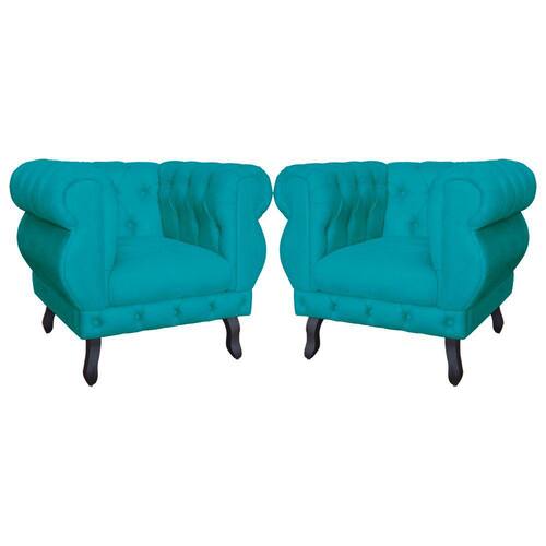 Kit 2 Poltronas Decorativa Sala Recepção Maya Suede Azul Turquesa LM DECOR