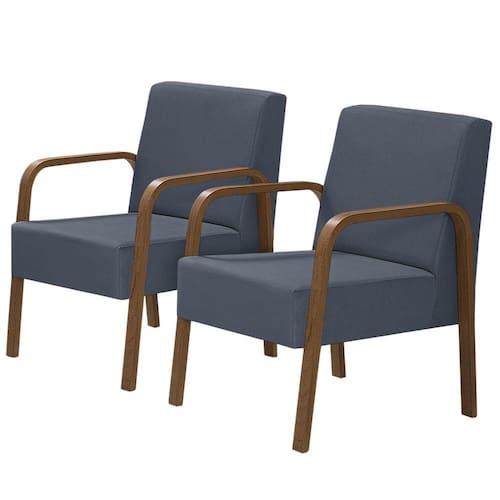 Kit 2 Poltronas Decorativas 1 Lugar Luna Braço Madeira D Salla Suede - Azul Marinho