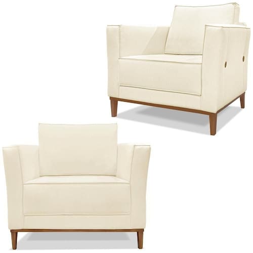 Kit 2 Poltronas Decorativas Balli Pes Madeira Linho Perola Ezz Perola