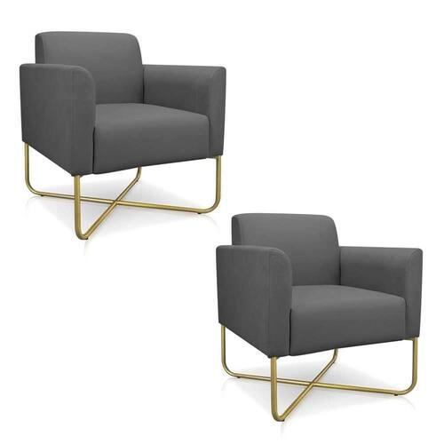 Isso mesmo! Se uma Poltrona Decorativa já é boa, imagina duas? Por isso, apresentamos a você o Kit 2 Poltronas Maressa Suede Grafite da Ibiza! São produtos super versáteis que podem complementar seu lar proporcionando conforto e elegância na medida certa. Esses itens lindos podem fazer parte da sala de estar, quarto, escritório ou ambientes corporativos, afinal o design moderno combina com qualquer ambiente. Além desse estilo incrível, ela possui estrutura em madeira de eucalipto e espuma de alta qualidade, tudo para garantir durabilidade e resistência. Ah, conta com base x dourado estilo industrial, assento reforçado com percintas elásticas e são revestidas em tecido suede que transmitem maciez ao toque. Ou seja, poltronas para sala imperdíveis!
