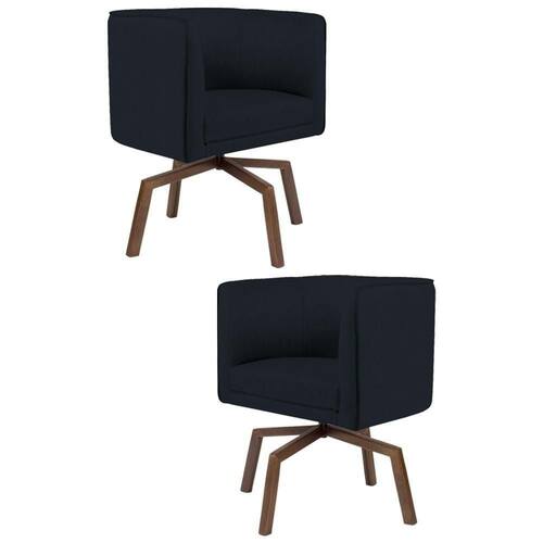 Kit 2 Poltronas Decorativas Base Ka Madeira Betina B-300 Veludo Preto - Domi