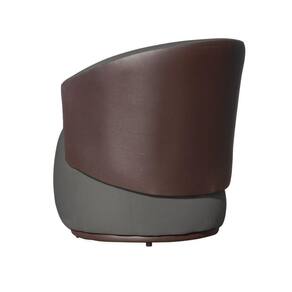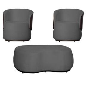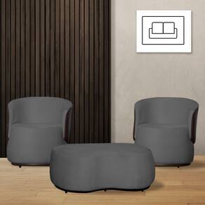Kit 2 Poltronas Decorativas e 1 Puff Grande Design Orgânico Beatriz Suede Composê Corino Marrom - Estopar - Cinza