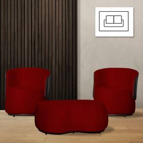 Kit 2 Poltronas Decorativas e 1 Puff Grande Design Orgânico Beatriz Suede Composê Corino Marrom - Estopar - Vermelho