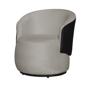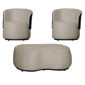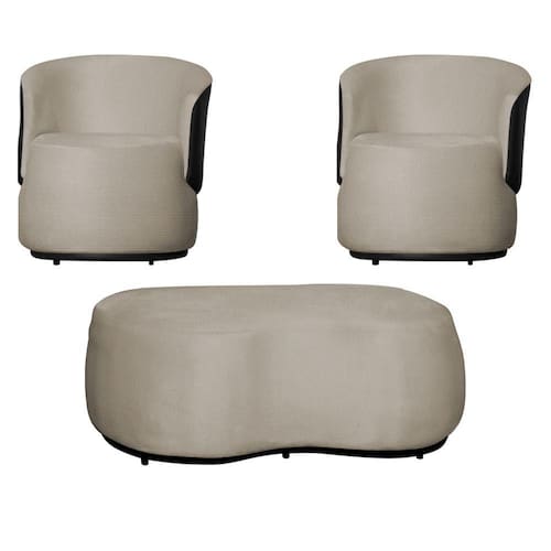 Kit 2 Poltronas Decorativas e 1 Puff Grande Estilo Orgânico Beatriz Suede Composê Corino Preto - Estopar - Bege