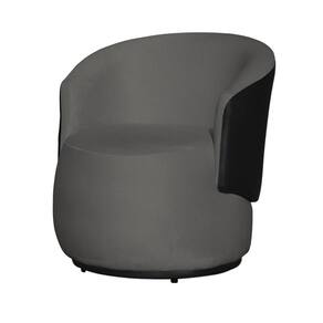Kit 2 Poltronas Decorativas e 1 Puff Grande Estilo Orgânico Beatriz Suede Composê Corino Preto - Estopar - Cinza