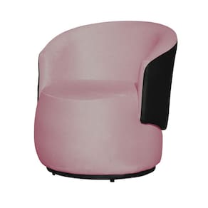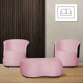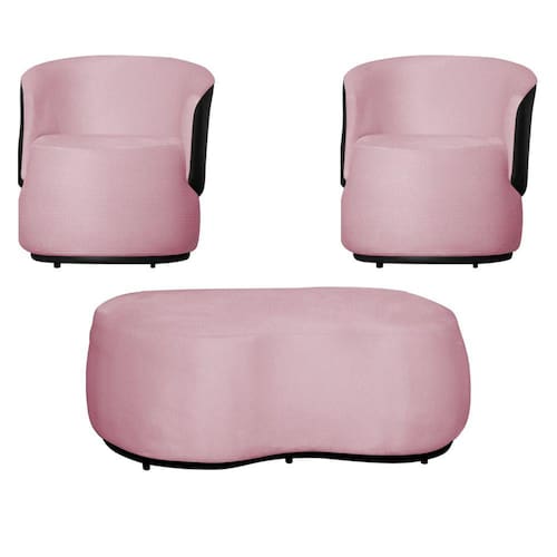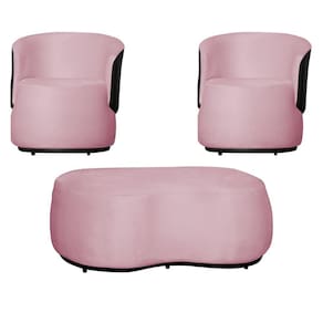 Kit 2 Poltronas Decorativas e 1 Puff Grande Estilo Orgânico Beatriz Suede Composê Corino Preto - Estopar - Rosa