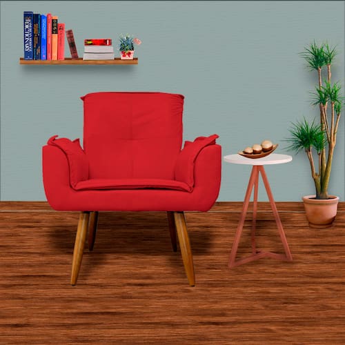 Kit 2 Poltronas Decorativas Estofadas Pés Palito Emília Plus Suede Vermelho - LM DECOR