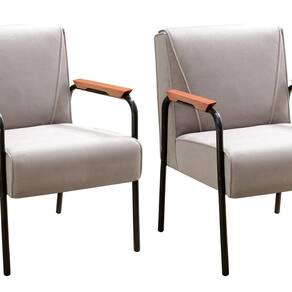 Kit 2 Poltronas Decorativas Jade Braços Fixo Cinza Capuccino