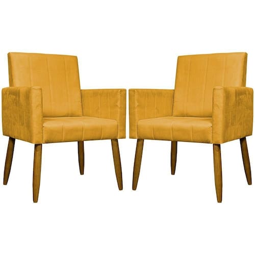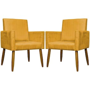Kit 2 Poltronas Decorativas Mari Suede Pé Palito - Mostarda Suede - Amarelo