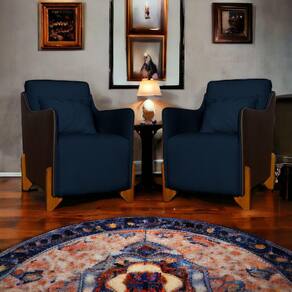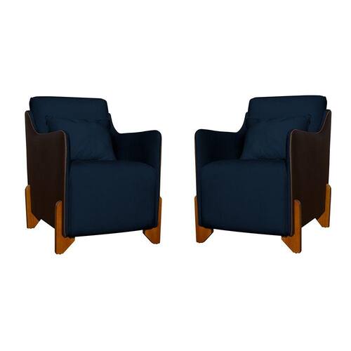 Kit 2 Poltronas Decorativas P/ Sala Quarto Heloisa Veludo Composê em Corino Marrom - Estopar - Azul Marinho