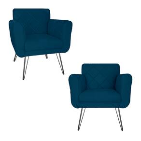 Kit 2 Poltronas Decorativas Para Quarto Closet Pés de Ferro Isabella Suede Azul Marinho - LM DECOR