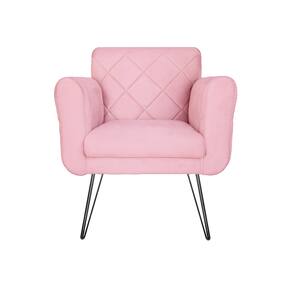 Kit 2 Poltronas Decorativas Para Quarto Closet Pés de Ferro Isabella Suede Rosa Bebe - LM DECOR