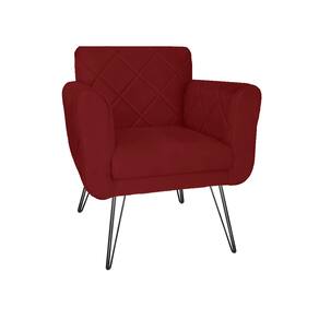 Kit 2 Poltronas Decorativas Para Quarto Closet Pés de Ferro Isabella Suede Vermelho Bordo - LM DECOR