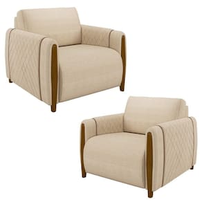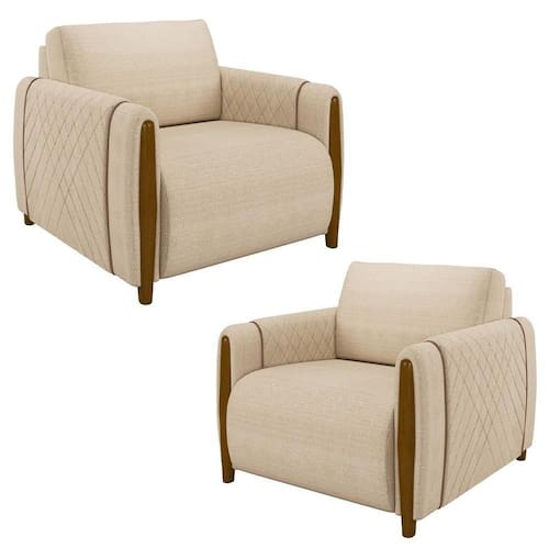 Kit 2 Poltronas Decorativas Para Sala De Estar 98cm Amaranto M22 Linho Champanhe - Mpozenato