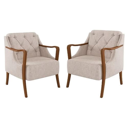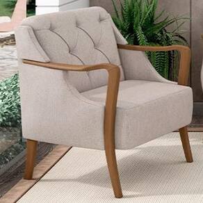 Essa poltrona para sala conta com um design clássico aliado ao contemporâneo para atender todos os requisitos de bom gosto e qualidade. Isso é possível graças a combinanação de materiais e texturas como a madeira dos braços e o revestimento do estofado. Além disso, as bordas, braços e pés curvos juntamente com a costura capitonê do completam a lista de adjetivos.