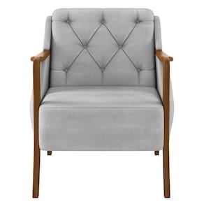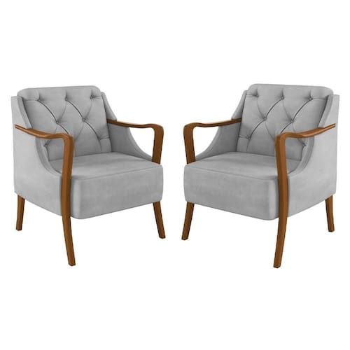 Kit 2 Poltronas Decorativas Para Sala De Estar Capitonê Lapa M22 Veludo Cinza - Mpozenato